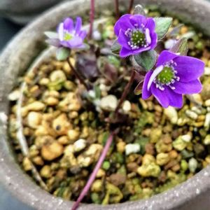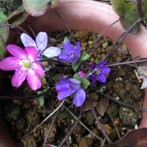 今晩のお供に😊😆 まだ、ミスミソウ(いわゆる雪割草)が花をつけていました。 多様なその形、色合いに引き込まれる美しさですよねえ😍💕⤴️⤴️