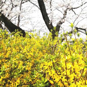 春を代表する レンギョウの黄色が 眩しいです✨ 花言葉は 期待、希望とか😃 桜の季節 咲き乱れているのに あまり注目されてなくて😢