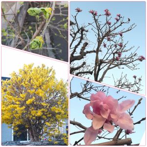 桜を見た後ご近所で 右➡️ シデコブシ 毎年満開のピンクのお花で良い香りを運んでくれていたのだけど、今年はポツポツ🌺 去年の秋、樹形が変わるほど強剪定してました。 なのでお花が少ないのかなぁ~ 強風に、花びらパタパタと🌺 花芽が顔を出してるライラック💚 満開過ぎそうなレンギョウ💛 賑やかになってきましたよ💗 夕日浴びて、シデコブシ色が少しマイルドに😅 どれもこれも鮮やかさ足りないね😥