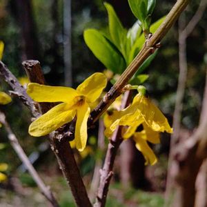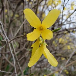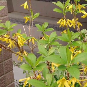 先日こちらで名前を教えていただいた連翹です🌱 つぼみだったけど、咲きました。✌️