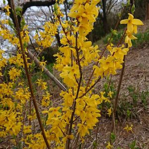 散歩道で。 レンギョウが綺麗に咲いていました。