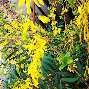 レンギョウ✨ 長く伸ばした枝と黄色い連翹の花に春の息吹きを感じます💛🎶🍀