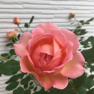 イングリッシュローズ「ジュビリーセレブレーション」 地植え5年目です。去年から上を向いて咲くようになりました。咲いてる時に雨が降ると重くなって下を向いてしまいますが… あと、我が家では虫に1番好かれていますね🐛 黒星が少し出ることがあります。 画像の通りステムがけっこう長くて、丸くこんもりまとまる感じはないですね。 ですが花色が本当に可愛くて、色に限定すれば一番好きなバラです。