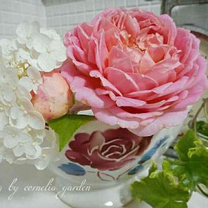 あじさいとイングリッシュローズさんたちを一緒に飾りたくてカット*♬೨̣̥