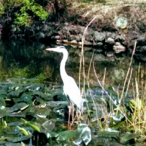 水元公園、水辺の里の池の水性植物の中に、アオサギがいました。