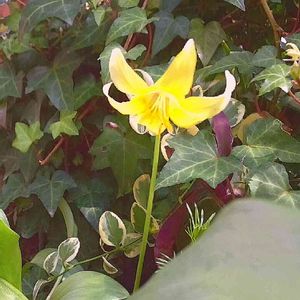 🌺黄色のカタクリ🌺 昔‥‥‥ 福井の永平寺に ドライブした時 近くの山に ピンクのカタクリが 沢山自生してて 可愛いなぁと 思いました 何年かして 黄色が売ってたので 庭に植えました🤭💕 オダマキに似ています🤗💕