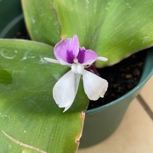 I週間前に😊 知り合いから貰って 花芽がついてるから 咲きますよって言われて 小さい欄に似た 花でした。 バンウコン 初の花 花が咲きました。 バンウコンはインド原産の多年草で、地面に張り付くように葉を広げ、その中心部に白い可憐な花を咲かせます。 「ガランガ」や「ガランガル」とも呼ばれます。 花は通常午前中のみ咲く貴重なものです。 全体に生姜に似た芳香と辛みがあり、ショウガに似た根茎を調味料として利用したり、カレーの香辛料にします。