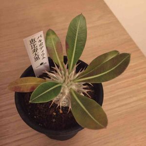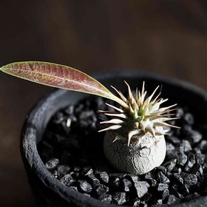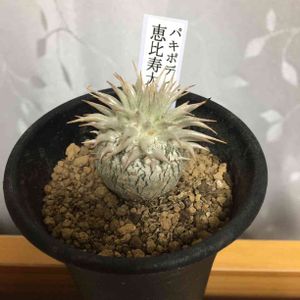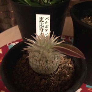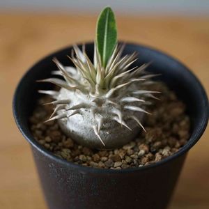 パキポディウム・デンシカウレ。 恵比寿大黒。 昨日投稿の恵比寿笑いに比べると小さくて成長も遅い。 寒くなったのでこいつも部屋に取り込んだ。 いじらしく葉を1枚だけ残してる。 可愛らしいサイズに葉が1枚、これはこれで・・・。