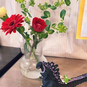 今週のお花ちゃん💐💕 綺麗なお花がたくさん咲く季節ですね。 初心者ながらお花を飾って楽しんでいます。 いつの間にか息子のゴジラとマリオが 花瓶の前に置かれてました…🦕💕