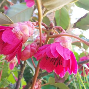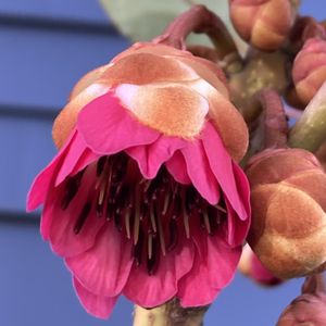 ロドレイヤ(シャクナゲモドキ) 皆さんの投稿で会いたいなと思っていた花を今日の散歩で見つけました。 赤というよりローズピンクの花を下向きに集まって咲いています。 このお宅のシンボルツリーになっていました。 🏷真っ赤な火曜日 🏷あっ火曜日 に参加させていただきます。 マンサク科 ロドレイア属 原産地: 東南アジア〜中国 開花期: 2〜4月 花径: 5㎝ほど 葉: 椿の葉のようなぽってり感がある。