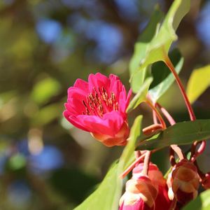 シャクヤクモドキ。何年も植物園に通っているけれど、この花は初めて見た気がします。マンサク科の常緑低木。真っ赤な花びらと蕊がとても印象的な花でした。 頻繁に訪れている植物園ですが、この時期、1週間後に来てみると、前回見なかったような花が幾つも見られます。2週間あけてしまうと、見損なうこともあります。シャクナゲモドキも、そんな訪問の合間に咲いて、見ていなかったのだと思います。