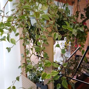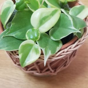 ペペロミア セルペンス💕 ハート形で肉厚で斑入り~\(^o^)/ 我が家にある3種類のペペロミアで 最後の紹介がこの子です。 写真上、パッと見、斑入りモンステラ? ポトスエンジョイ?みたいな😅 実は、ペペロミアの中で1番最初に我が家にお迎えしたんです。 年末に店頭で278円で ひょろひょろで しかも、ちょっとしか葉っぱがないのに 欲しくて買ってしまった😱 今は、数カ所から新芽が出て来たり 新葉が出ました😊❤