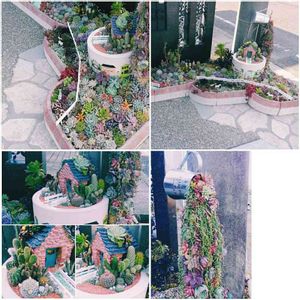 春にみどりのまとめで投稿した多肉花壇。 センぺルだけが花が咲いて1つ枯れたけど、後は今の所全部元気です😊 土管に書いた絵も隠れてしまいそうな勢いです👍 普段は寒冷紗の黒ネットを掛けて有りますが、今日はネットを外して📷に。。 何とか此からの暑さにも耐えてほしいなぁ⤴