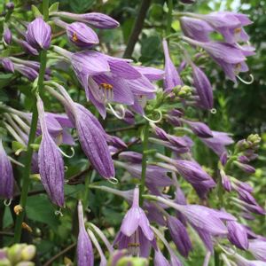 ホスタの中で最初に咲き出したのは 4月にお迎えしたばかりのブルーマウスイヤー ウイルスが心配なシリーズのタグが付いていたので 他のホスタとは隔離して様子見中 隔離先の日当たりが良すぎて葉焼けさせてしまい 特徴的な青が早くも緑になってしまったが 今のところ健康的 どうか このままスクスク育ちますように!