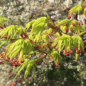 満開の桜の中、もみじの花の蕾でしょうか?はじめて目にしました。 気づいたら、久しぶりの投稿になりました。 3月31日撮影