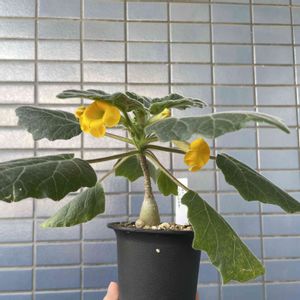 ゴマ科の塊根植物、ウンカリーナ・ルーズリアナ。 今年の1/24に種まいて、まだ小さいのに沢山ツボミ付けてる。 株の生長のために取ってしまうか・・・いや、このサイズで花咲いてるところを見れるのは今だけだしなー。 よし、咲かせてみよう!