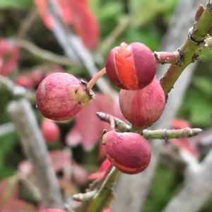 貧弱なニシキギの木に赤い実が成っていました‼️ 今年は花も少なく、葉っぱの紅葉もイマイチですが、実だけはしっかり出来ていました☺️