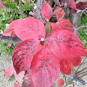 近所のマンションの植え込みあるハナミズキの紅葉が綺麗です❣️ 来年咲く蕾も付けています☺️
