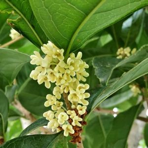 過去にはギンモクセイだと思っていたのですが、花の色からウスギモクセイだと知りました。 2年前の今頃に突然剪定されて以来、花が咲かなかったのですが、今年は3本の枝に花を付けました‼️ 手の届くところだったので何とか撮れました❣️ 出会えて良かった🎶