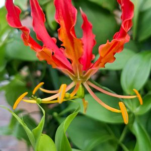 グロリオサ 別名キツネユリ、ツルユリ、ユリグルマ イヌサフラン科 原産地は熱帯アジア、アフリカ 球茎を持つ落葉性の多年生植物 地下茎はヤマイモに似ているが有毒 色も形も情熱的でザ夏です✨✨ いつもご覧頂きありがとうございます💞 勝手ながら暫くお休みします😌