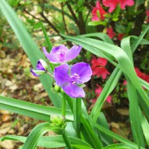 こんにちは👋😃 今日は少し蒸し暑いけど太陽が出てなかったので花壇の除草をしてました💦 今日、サフィニアももいろハートが★になりました😭 切り戻しをしてから花を咲かせることなく消えてしまい落ち込んでます😢⤵️ 今年はペチュニア、サフィニア系は全く上手く咲かせることが出来ないです😢暑すぎなのか育て方が悪いのか葉っぱモリモリになっても花は咲かず枯れて消える⤵️自信喪失です😥 取り敢えず今日の花💞 ムラサキツユクサです。 4月に団地の植え込みに咲いてた子です🌼