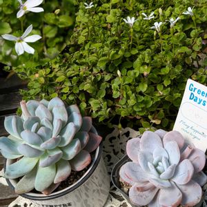 こんばんは〜😊💖 今日も暑かったですね🥵 6月なのに、暑すぎです〜😨💧 今日のお花がエケベリアだったので、お粉ののった ♡ラウイさまと ♡ラウリンゼにしました〜😊☺ 後ろの♡プロティアさんも かわいいお花🤍 チラホラ咲いてます💓💞 ② 大好きな白いアナベル🤍 毎年 たくさんのお花を咲かせてくれます🤗💓 強い雨☔と風で、倒れたけど 何とか持ち直してくれてます🎶 🏷 今日のお花 エケベリア 🏷 白い水曜日♡
