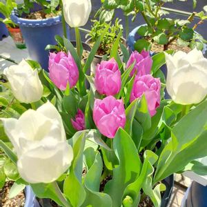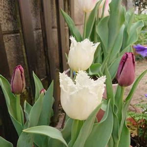 🌷暑がり家のチューリップリレー🌷 こちらはこれからが本番。 変わりゆく花色が楽しみです💛 ティンカさんの鉢に、次は アントワネットさん。