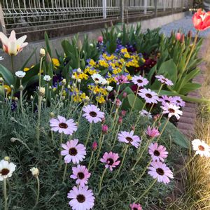 チューリップが可愛い色💕で咲いてくれました。忘れな草もモリモリです😊