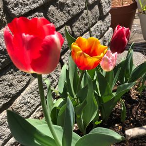 連投失礼します😅 秋に植えた原種チューリップ🌷 元気が出る色です😊