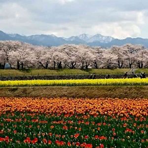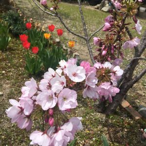 用事のついでにパチリ🎶 新潟ふるさと村のガーデンです。❤️ 例年はチューリップがもっと遅いので、桜🌸とチューリップ🌷 のコラボは見れないんですが、 今年はチューリップが早いので、コラボで見られます。🎶 ピンク💕ピンクでとってもロマンティックです。₍₍ ( ๑॔˃̶◡ ˂̶๑॓)◞♡