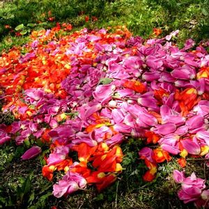 チューリップの花びらの じゅうたんです。