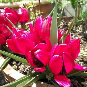 朝から暖かい日差しを受けて🌷さんが花びら広げてくれました🤗💕 ワイン色の🌷さんも仲間入り😊🍀