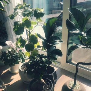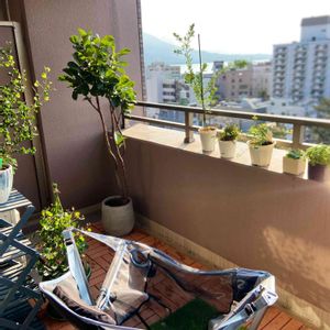 カシワバゴム バンビーノ 久しぶりに観葉植物購入。まだ小さいから大きく育ちますように。 梅雨の晴れ間に日光浴中✨