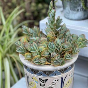 朝食とらずに多肉棚へ、出勤前にパチリ📸 ロメオ×銀天女交配種からたくさん子株出て、鉢から溢れてます😅 冬入る前に植え替えかな〜 それとも春まで現状維持か? ♪あなたな〜ら、どおする〜♫ 😁