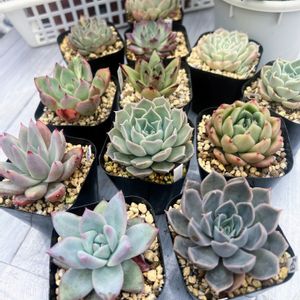 こんにちは〜 多肉友さん宅で色々とお話しさせて頂きました。 綺麗で大きなエケベリアがたくさんありました。 特にルノーさんは、梅雨時から10月頃まてほとんど水やりしないそうなので驚きでした。(温室に避難して雨や蒸れ対策してるそうです) 夏場によく⭐️になるのを聞くのでやはり水やりが肝のでしょうね (下葉が枯れて一回り小さくなるそうです) 楽しい時間をありがとうございました😊