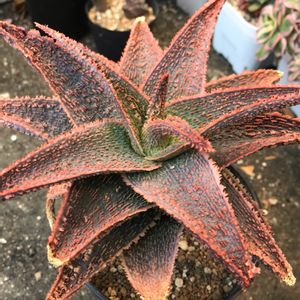 良い天気〜☀️ てか、草抜きしてたらめちゃ暑い🥵 休憩中に植え替え予定のアロエを📸 良い色、良い肌してる〜 草抜きは腰に来ます。 あと、半分くらい💦 頑張ろ〜 植え替えする元気残るかな😅