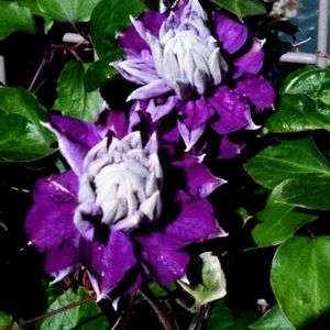 散策の途中で、通り道のお宅の玄関に、綺麗な八重咲きのクレマチスの花が、咲いていました。