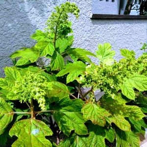 散策の通り道、水元公園の向かいのお宅の玄関前に、柏葉紫陽花の花芽が出てきました。