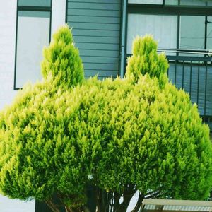 買い物途中で、通り道のお宅の樹木が、😸型にカットされていました。 にゃんにゃん祭り