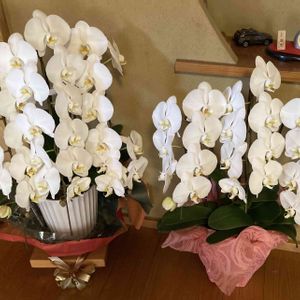 おはようございます 胡蝶蘭 ケーキ屋さんの開店日に飾ってありました 11時オープンで凄い行列 並んだのですが2時間 途中息子が交代してくれました 帰ろうと思いましたが😅