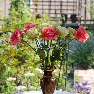 バラをいただきました。三上バラ園の切り花です。いつも美しく優れた切り花を育て、良心的な価格で販売されているバラ園さんです。花卉業界も、コロナの打撃を受けていらっしゃると聞いていましたが、知人はそれをサポートしたいと、沢山花束を買って知り合いに届けているそうです。いずれ劣らぬ美人さんばかり。切り花のバラはほんとに完成度が高いなあ❤️そして、バラをもらうって、ほんとに嬉しいなあ❤️私もバラ園でお花を買おう!