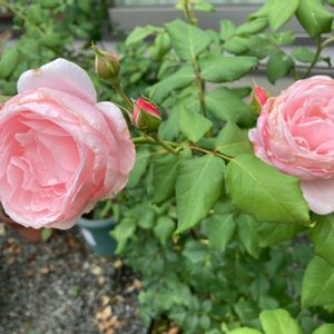 ❀・*:.。 。.:*・゚🍀薔薇 ナエマ🌸❀・*:.。 。.:*・゚ 房の蕾も膨らんできました 花茎が長くて昨年は上手く形に出来ず…💦 今年は思い切って剪定したら目の高さで咲いてくれました🌸 本来のナエマさんの姿ではないかもですが 私にはこれくらいのサイズが合ってるかも!? しばらくごめんネ💕 誘引できるようになったらもう少し大きく育ててあげたいです 後ろに丸くぼんやり見えるのはアメリカフジ🦋💜 昨日の強風今日は雨 開花目前の子も多いこの時期🌹 お花さん達頑張って〜🍀🌿🍀🌿