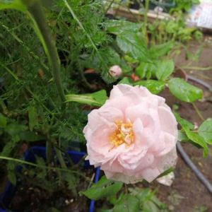 調子悪いと言いつつもポチポチ咲いているナエマ様🌹 いつもよりひと回り小さいお顔で香りも薄めですが、スリップスがいないのは珍しい。真夏はいないんだっけ?