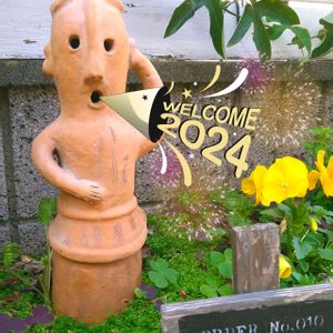 誰も居ない実家の玄関にひょうきんな顔して淋しく独りぼっち😔。うちの庭に引っ越してきた「はにわ君」です!どうぞよろしく。居心地はまぁまぁかな😊 初詣のおみくじは…末吉。去年、大吉からの怒涛の1年だったから…末吉から這い上がる方がいいかも。右肩上がりを期待💪