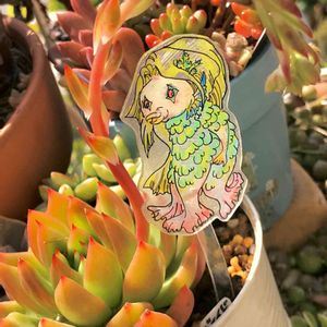 ⛩疫病退散⛩ リクエストにお応えして…… 岩造アマビエver. あえて髪は作りませんでした🖐 中心にアガベやセダムなどで寄せ植えして、周りをグリーンNやルビーNなどのネックレス系で髪を表現すると良いかなと個人的に思いました☺️ それ以外でもアマビエの髪を表現して完成させて下さい👍✨ がんばれ日本🇯🇵 これ以上被害を広めない為にも、密着密閉を避け自宅で寄せ植えや植え替えなどして自粛を満喫しよう✊