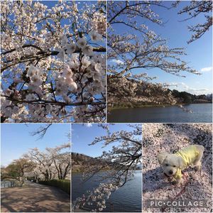 桜満開🌸 ワンコも花びらにうもれそう🎵