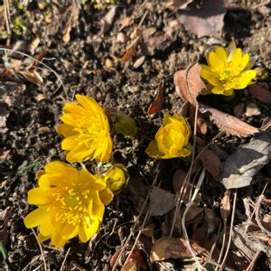 雪が解けた陽当たりのいい場所に 福寿草見つけました🌼 こんなに早く見つけるとはびっくり❣️ 今年は雪が多く、まだまわりは どっさり雪が積もってます❄️ でも春は近づいてますね😊