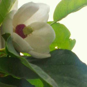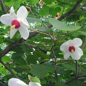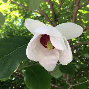 ♡オオバオオヤマレンゲ 花びらが純白で 雄しべの色が赤色の綺麗な花