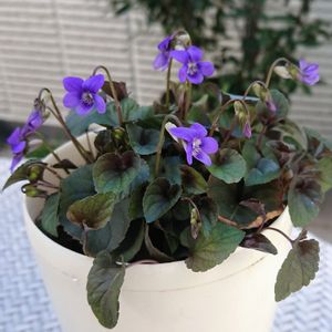 ビオラ ラブラドリカ💜 花数が増えてきました。 とっても可愛い小さなお花✨ 蕾もどんどん上がってきています。 真冬は背丈が伸びず、地面の近くで葉っぱに隠れるように咲いていましたが、3月になるとグングン伸びて、今、身長は10cmくらいかな? 葉っぱも増えて豊かになってきました。 色合いもシックで素敵です。 宜しかったら拡大してみてね🎶