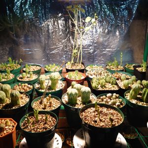 うちの塊根実生組 写真にはいないアデニウムの大きめ二人は昨年末に里子に出ていきました 写真のこちらは成長微妙な子達 左上の鉢の特に小さな子がパキポディウムグラキリスの唯一芽が出た子 春までもう少し 最初の冬を乗り越えられるか?